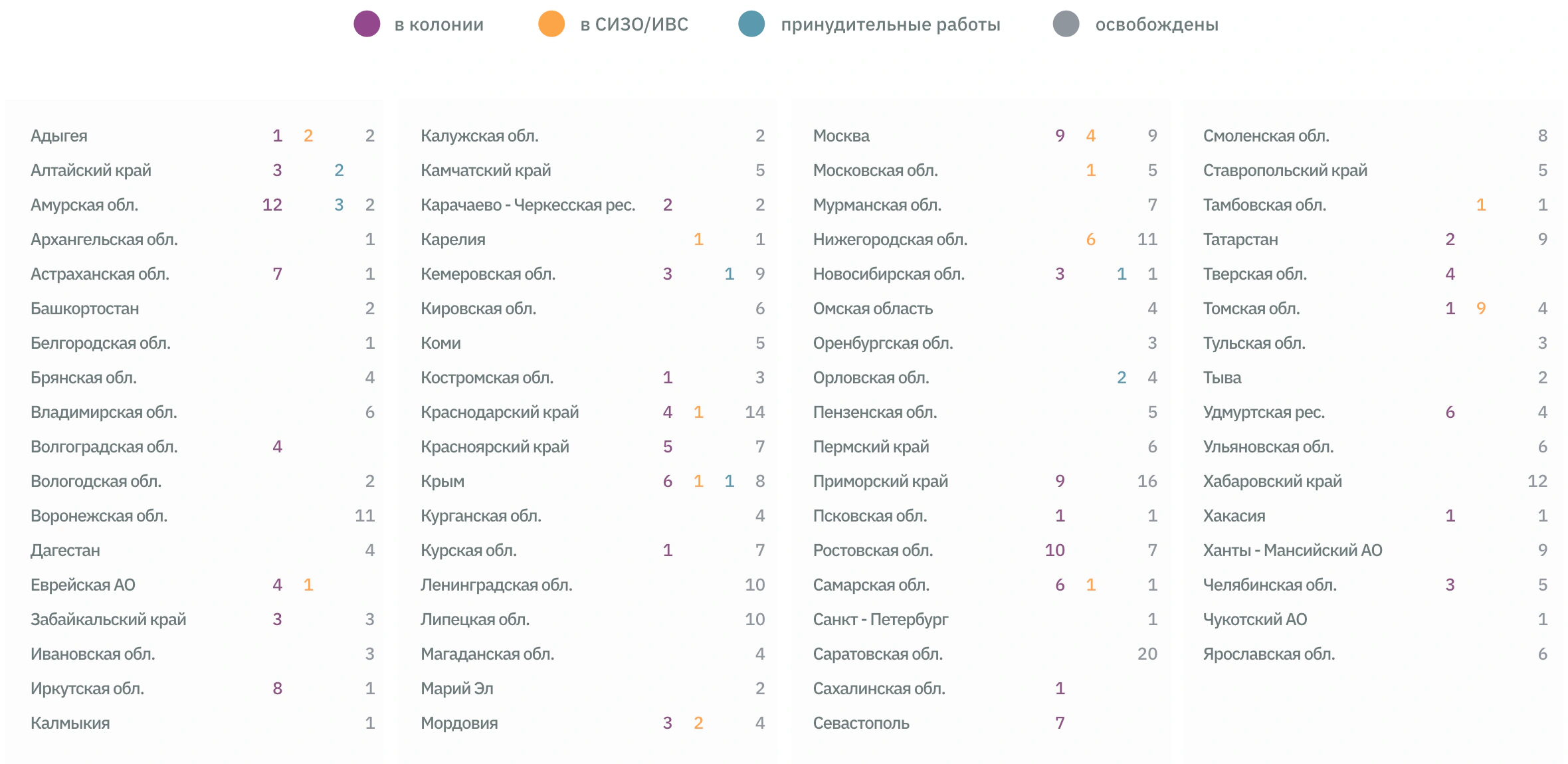 Европейский союз, Саха (Якутия), Крым, Хакасия, Мурманская область, Магаданская область, Смоленская область, Кемеровская область, Кировская область, Орловская область, Хабаровский край, Пензенская область, Новосибирская область, Краснодарский край