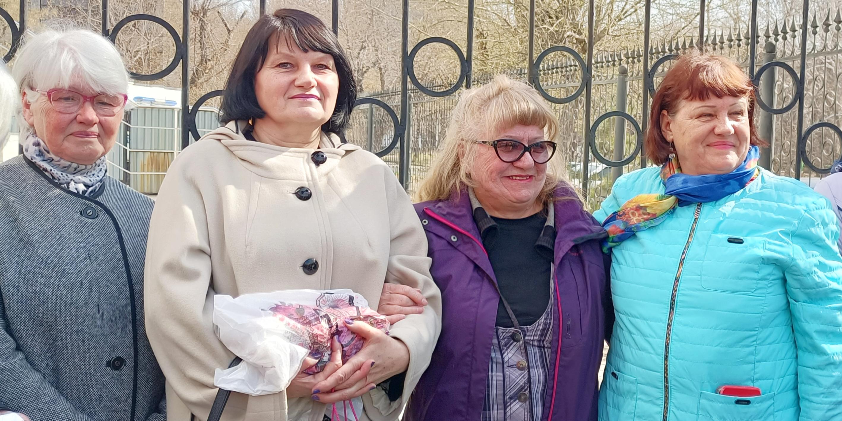 El día del veredicto, amigos y conocidos acudieron al juzgado para apoyar a Irina Mikhailenko (segunda por la izquierda). Abril 2023