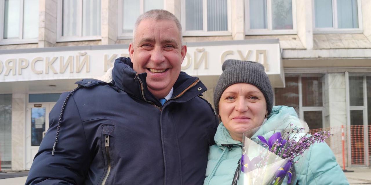 Vitali Sukhov vaimonsa kanssa valituskäsittelyn jälkeen (maaliskuu 2022)