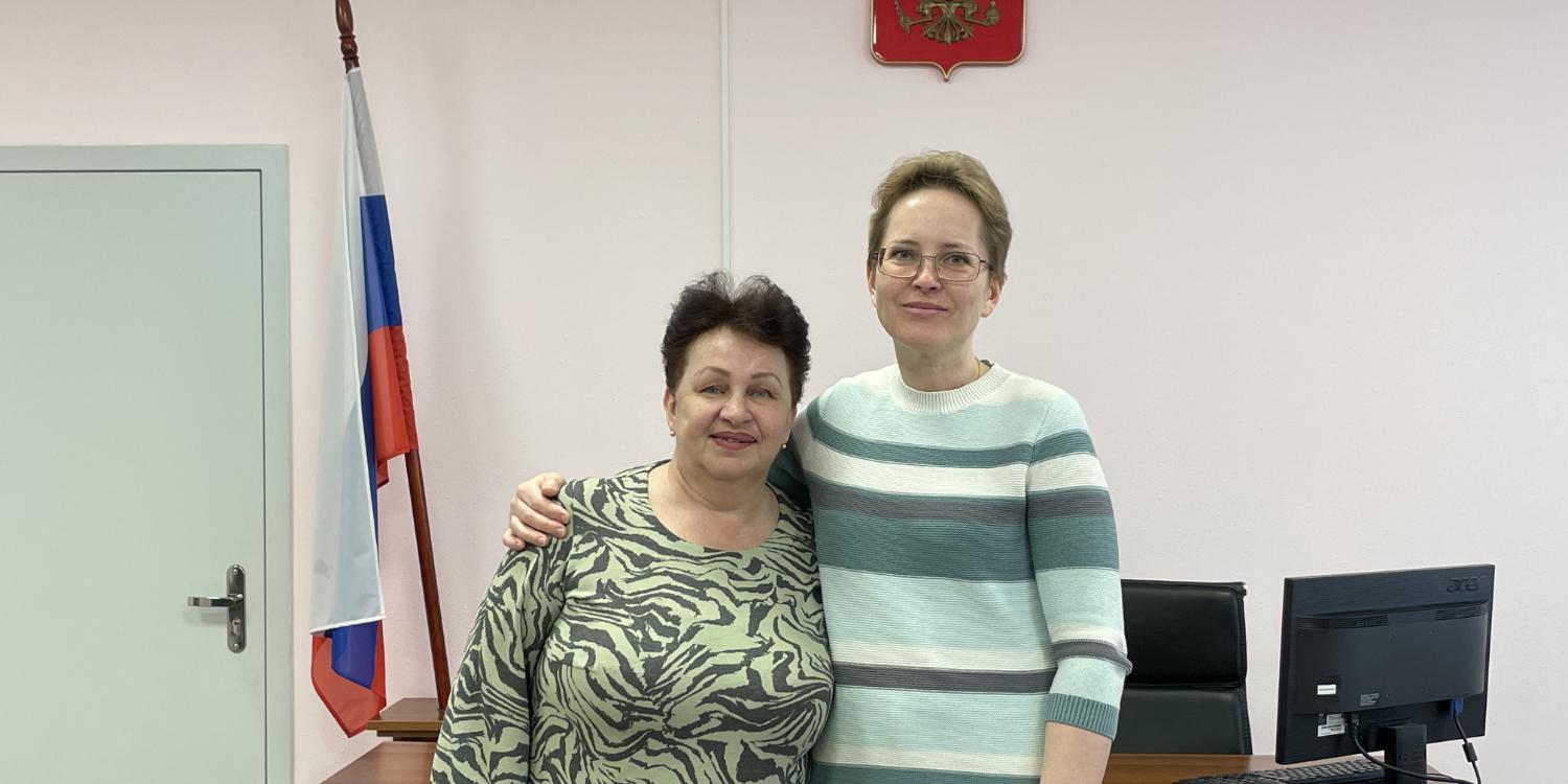 Larisa Potapova ja Olga Kalinnikova oikeussalissa, maaliskuu 2025