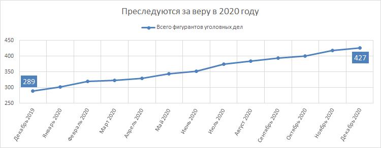 Quante condanne per fede sono state emesse nel 2020 e quante di esse sono entrate in vigore. Al 30 dicembre 2020, 59 uomini e donne sono stati condannati per la loro fede negli ultimi 2 anni. Nel corso del 2020, 39 persone sono state giudicate colpevoli ai sensi dell'articolo 282.2 del codice penale e condannate a varie pene dai tribunali di primo grado. (Nel 2019, la cifra era di 18.) Di queste, 21 persone sono ancora in attesa di una decisione in appello. Per 23 credenti nel corso del 2020 si sono tenute udienze d'appello e le sentenze sono entrate in vigore. (Nel 2019, il numero era 10.) In alcuni casi, le pene sono state ridotte o aumentate, ma la maggior parte sono rimaste invariate.