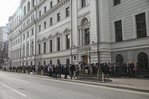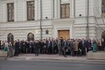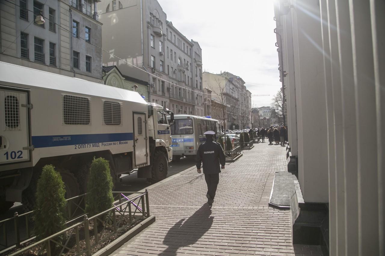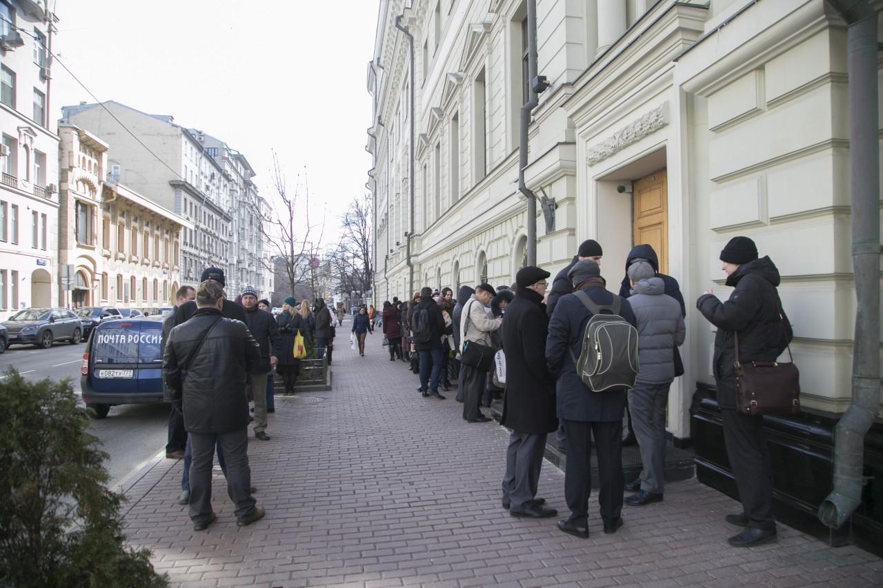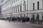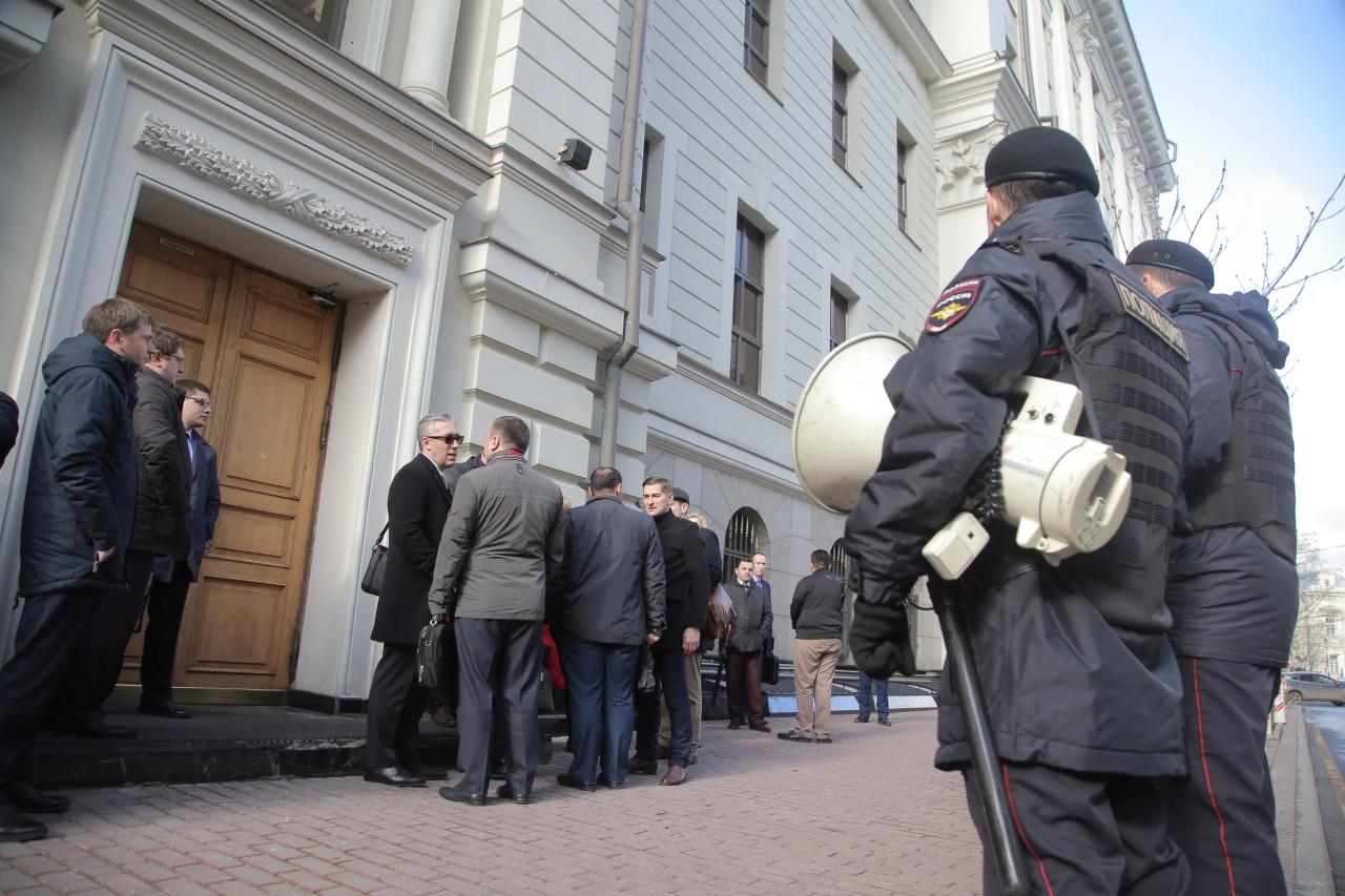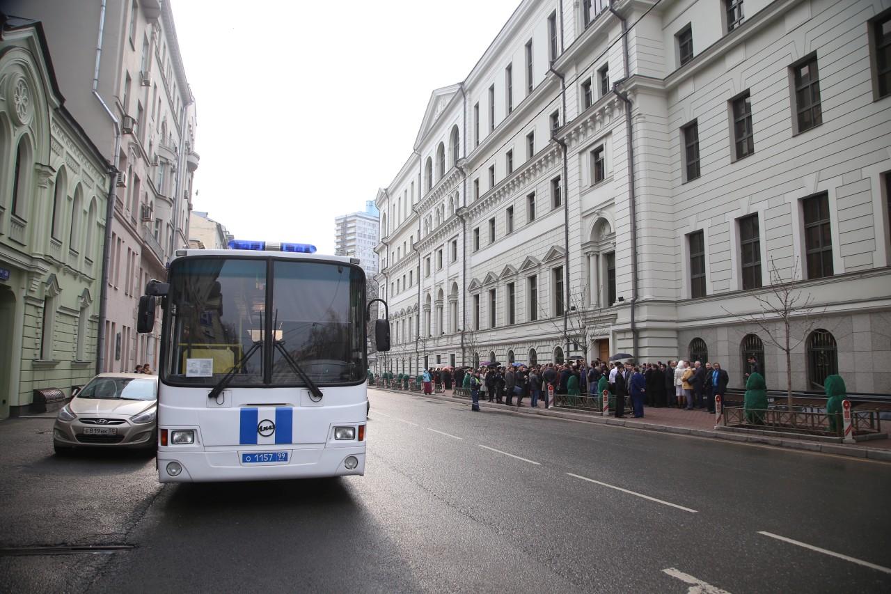 | 9:00 | Перед зданием Верховного суда как никогда многолюдно. Очередь начала выстраиваться еще с ночи. Многие специально приехали из разных городов России. Поскольку погода в Москве холодная, большинство одеты по-зимнему. Время от времени кто-то приносил кофе и пирожки для стоящих в очереди. Сотрудники полиции работают профессионально и слаженно, обеспечивая безопасность для слушателей процесса. |