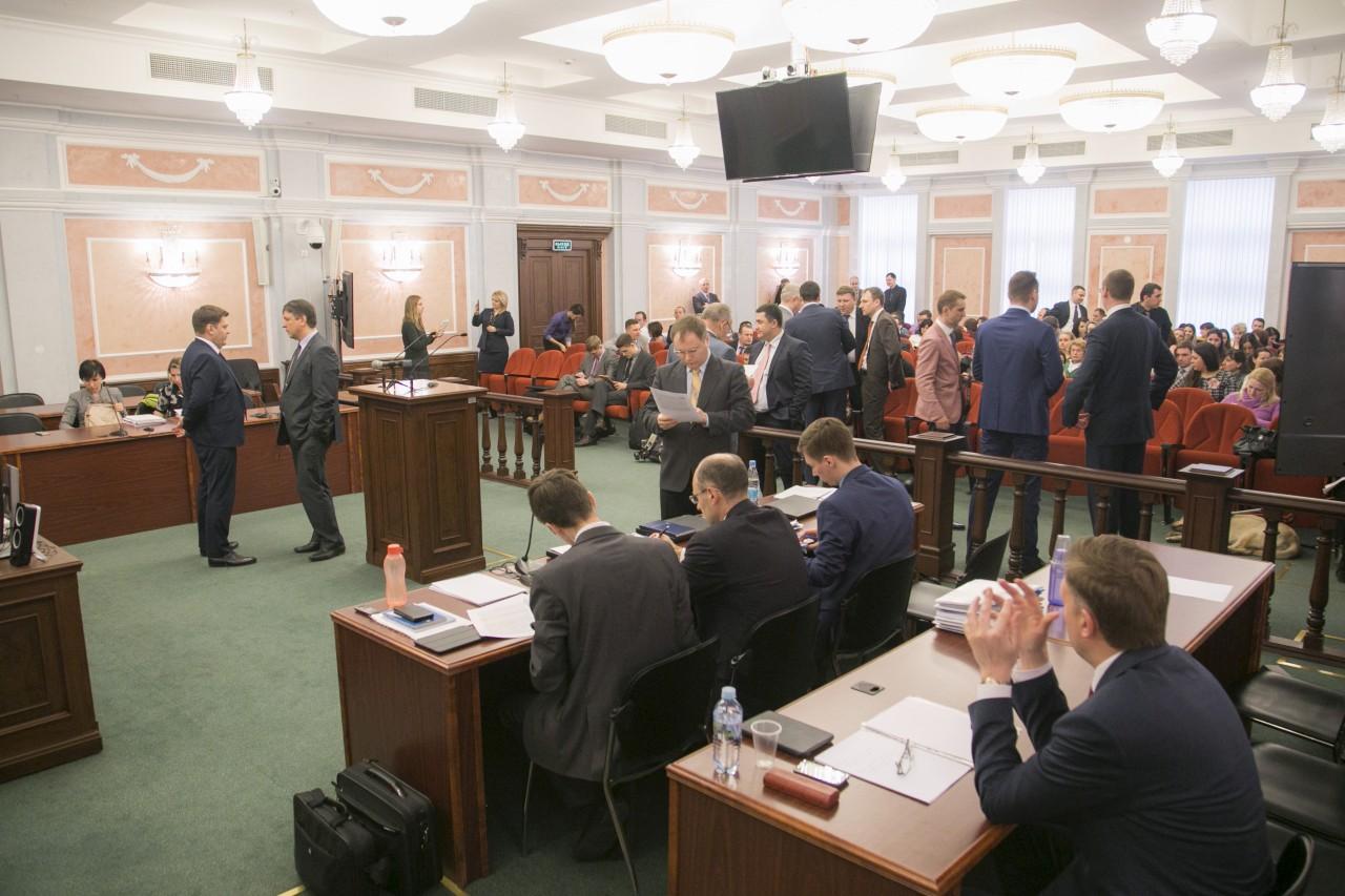 | 13:15 | Зал судебных заседаний Верховного суда понемногу наполняется слушателями. Ощущается с трудом сдерживаемое волнение. Стороны сосредоточенно готовятся к выступлению в прениях. |