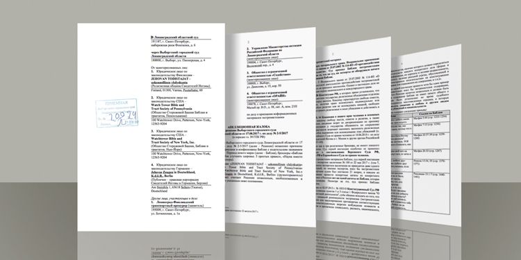 Ленинградская область21 сентября 2017 года в Ленинградский областной суд подана апелляционная жалоба на решение Выборгского городского суда, который признал экстремистским материалом и постановил конфисковать Библию с издательским наименованием «Священное Писание – Перевод нового мира». Жалоба (ниже) состоит из 141 пункта и обстоятельно доказывает необоснованность и незаконность решения суда.