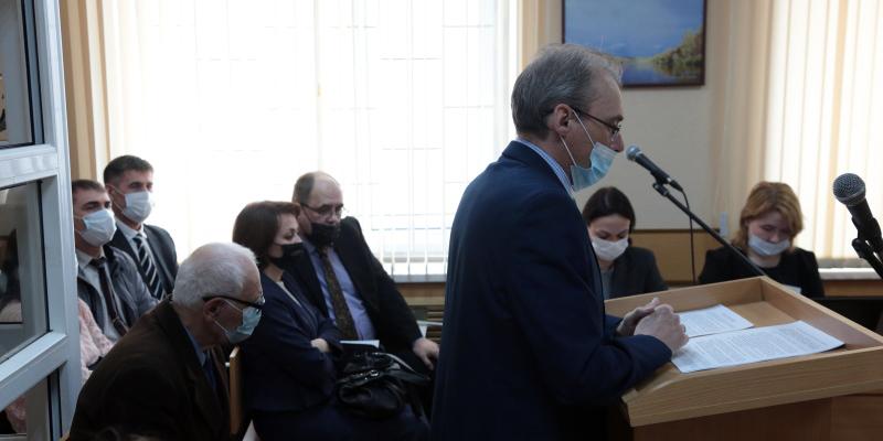 Юрий Вааг и другие подсудимые во время выступления с последним словом в Перми. Апрель 2021 года