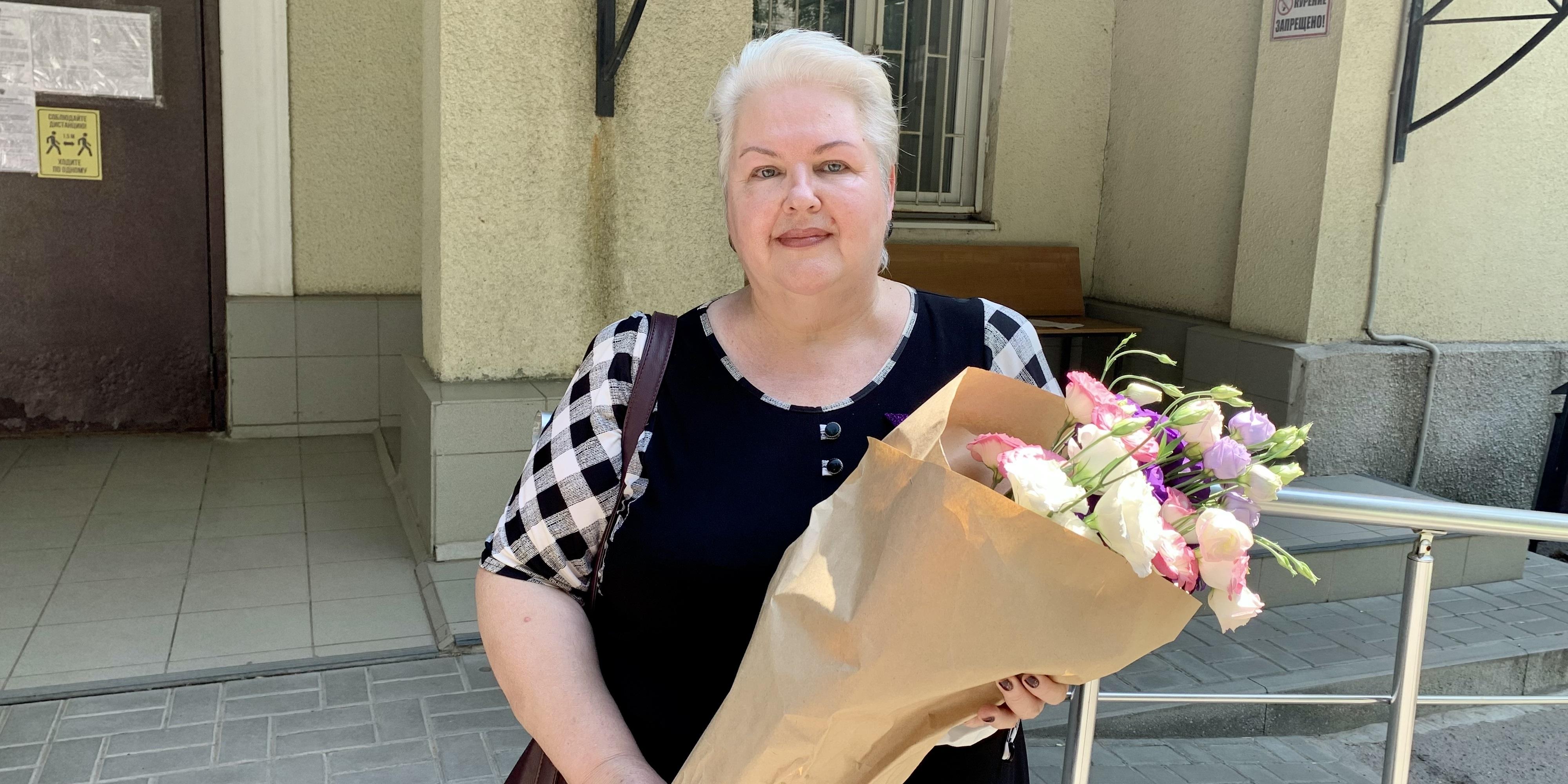 Olga Ganusha fora do tribunal antes da sentença. Rostov-on-Don. 13 Julho 2021