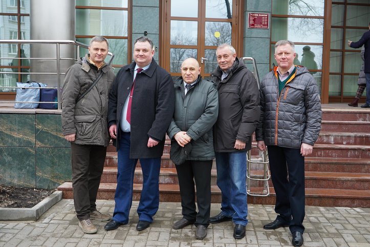 Da esquerda para a direita: Vitaliy Komarov, Ivan Chaykovskiy, Sergey Shatalov, Yuriy Chernyshev e Vardan Zakaryan no dia do veredicto