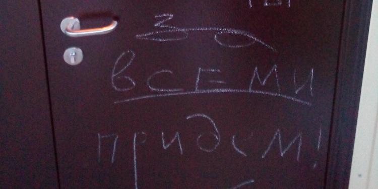 2017年5月5日,在新莫斯科斯克市(图拉州),不明身份的人进入耶和华见证人曾经举行礼拜的建筑物的院子,并在门上刻上了威胁性的铭文。