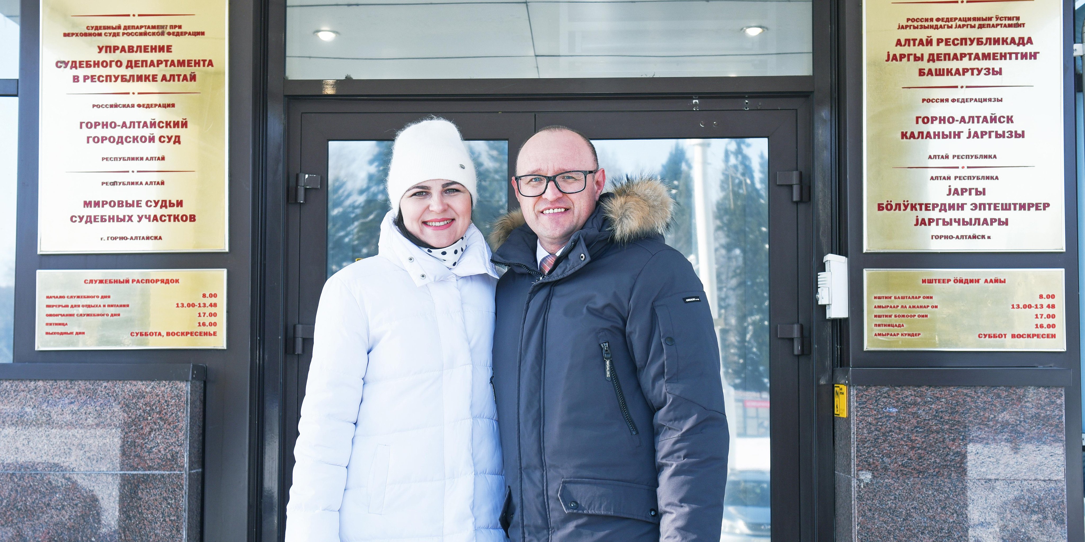 亚历山大和尤利娅·卡利斯特拉托娃在法院附近。2023年2月